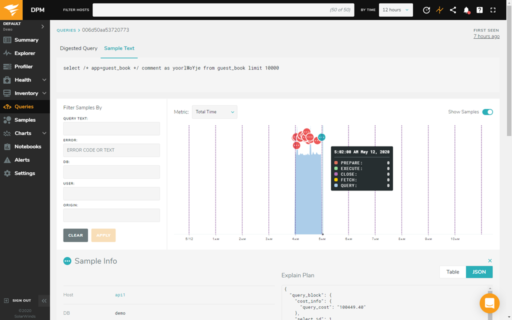 What do you do first when you notice a problem in your database? SolarWinds® Database Performance Monitor (DPM) gets answers fast by helping you uncover potential issues that might be connected to an error or outage. Down-to-the-second data collection can show you where you should start investigating to find the root cause, so your team can make changes, solve the current issue, and avoid future problems. Application development and DevOps teams can also use DPM to proactively prevent and minimize outages and achieve proven results.