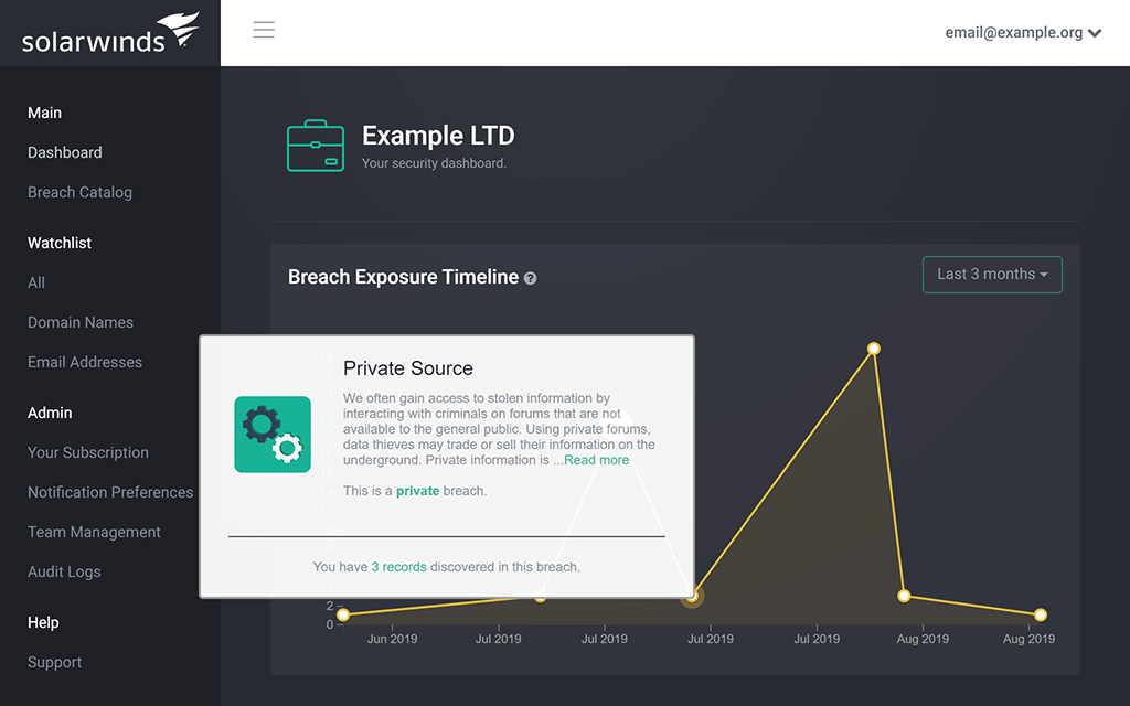 Monitor your email domains as well as high-impact employees’ private email addresses.